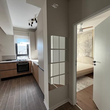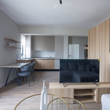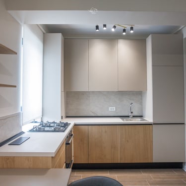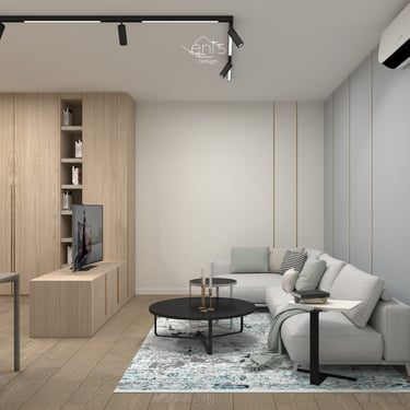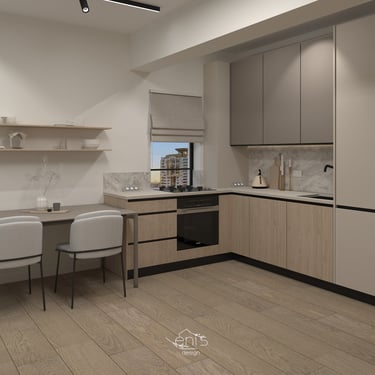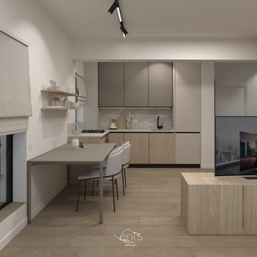 Livingul și diningul sunt gândite pentru confort cotidian, cu texturi moi și accente calde, iar bucătăria pune accent pe funcționalitate, dispunere ergonomică și suprafețe ușor de întreținut. Dormitorul continuă linia pastelată și calmă, oferind o zonă de odihnă simplă, dar bine structurată.