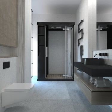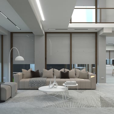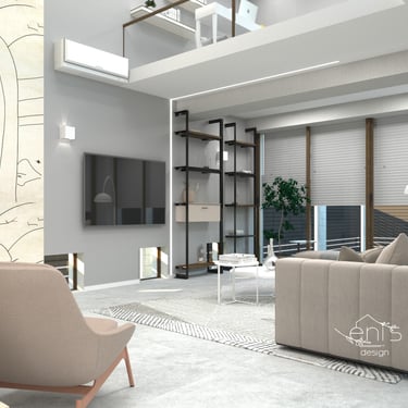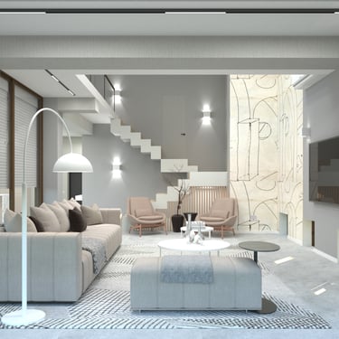 Acest proiect rezidențial propune o amenajare contemporană amplă, desfășurată pe trei niveluri, în care liniile arhitecturale curate, materialele premium și rafinamentul discret definesc atmosfera generală a locuinței. Spațiile sunt luminoase, bine proporționate și unificate vizual printr-o paletă cromatică neutră, cu tonuri de bej, gri cald și accente texturate.
