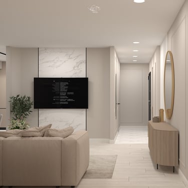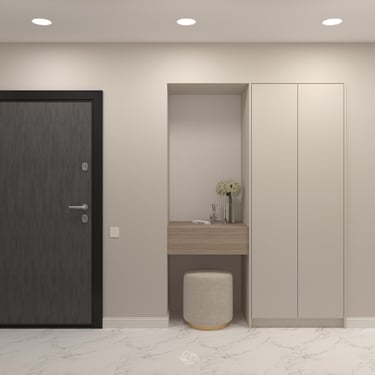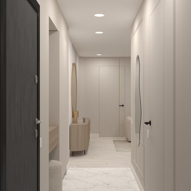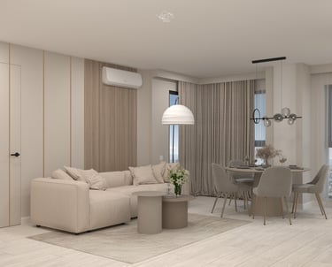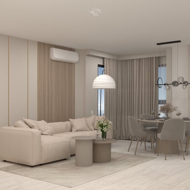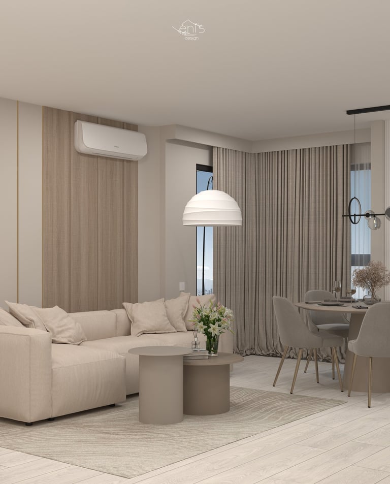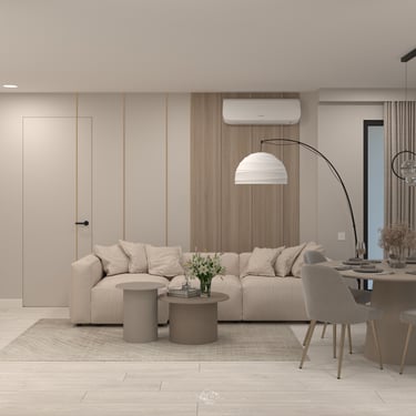 T.B. Rental Apartment a fost amenajat într-o estetică neutră și contemporană, creată pentru a oferi confort, funcționalitate și flexibilitate — criterii esențiale pentru un apartament destinat închirierii.